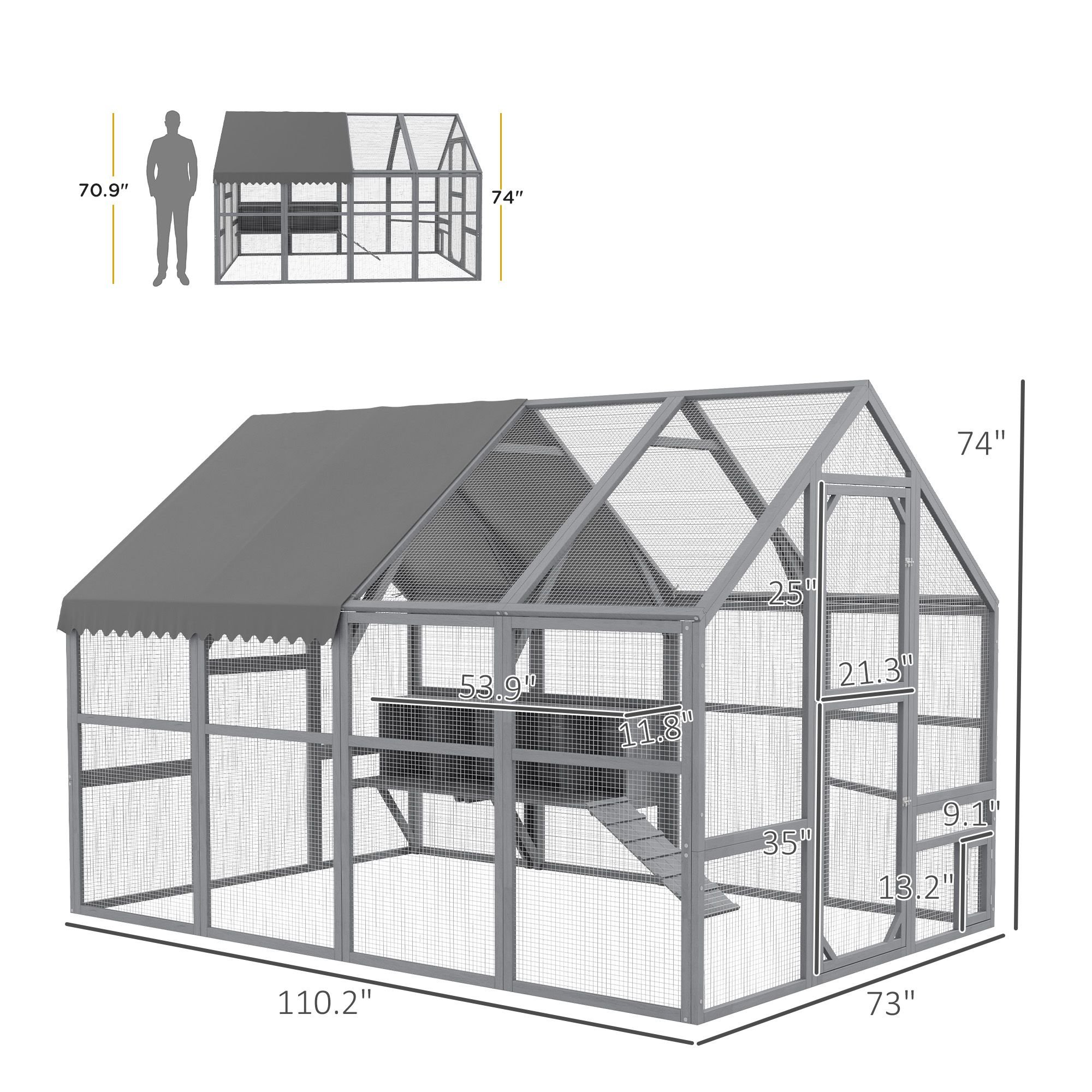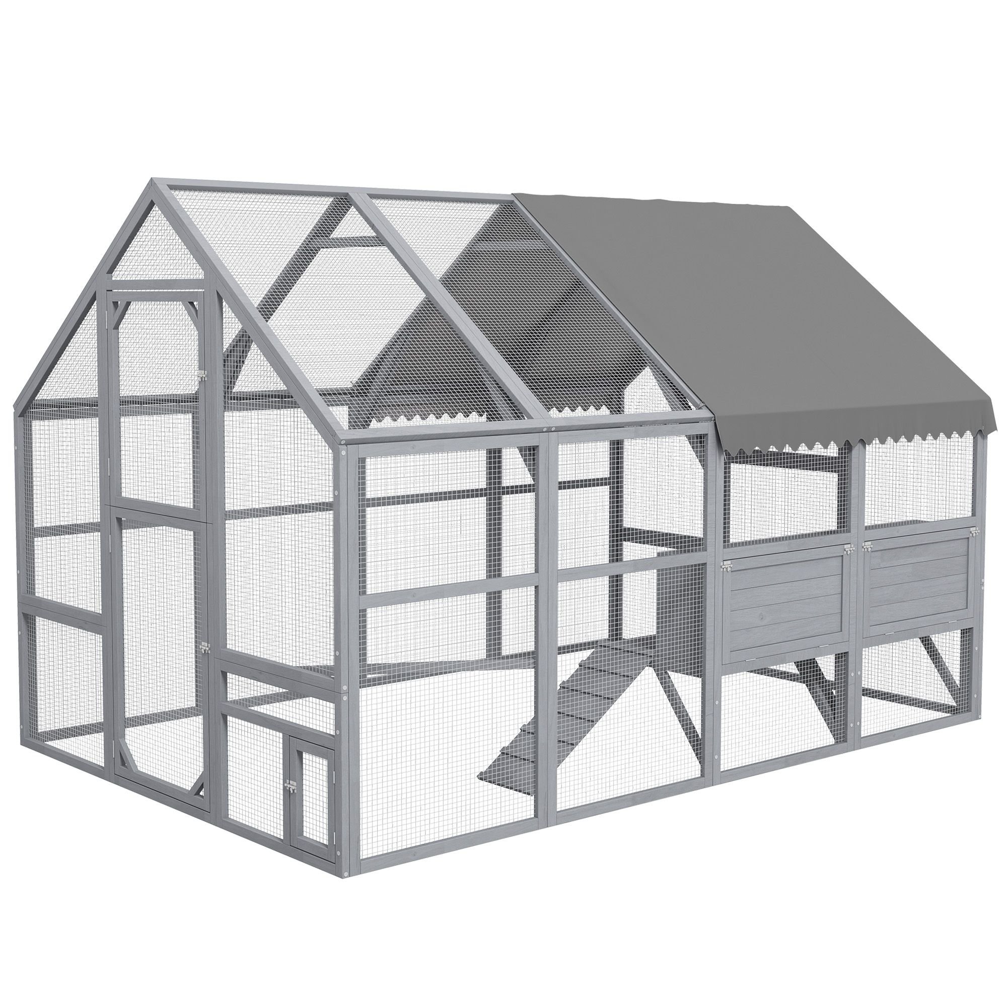 Transform your backyard into a poultry paradise with the PawHut chicken coop run! This spacious walk-in chicken coop ensures your flocks thrive with its secure, small mesh grid and large living area, complete with two nesting boxes and roosting bars. The waterproof and UV-resistant cover keeps them cozy and dry all year round, making it a wonderful outdoor chicken coop for your clucky companions!